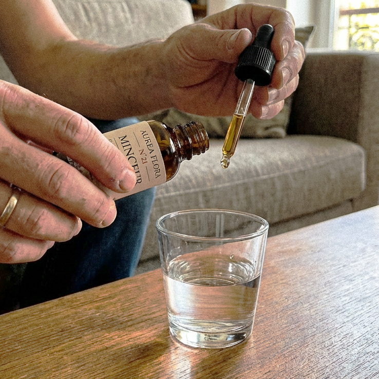 La teinture mère est soigneusement mise en flacon afin de garantir pureté et constance.