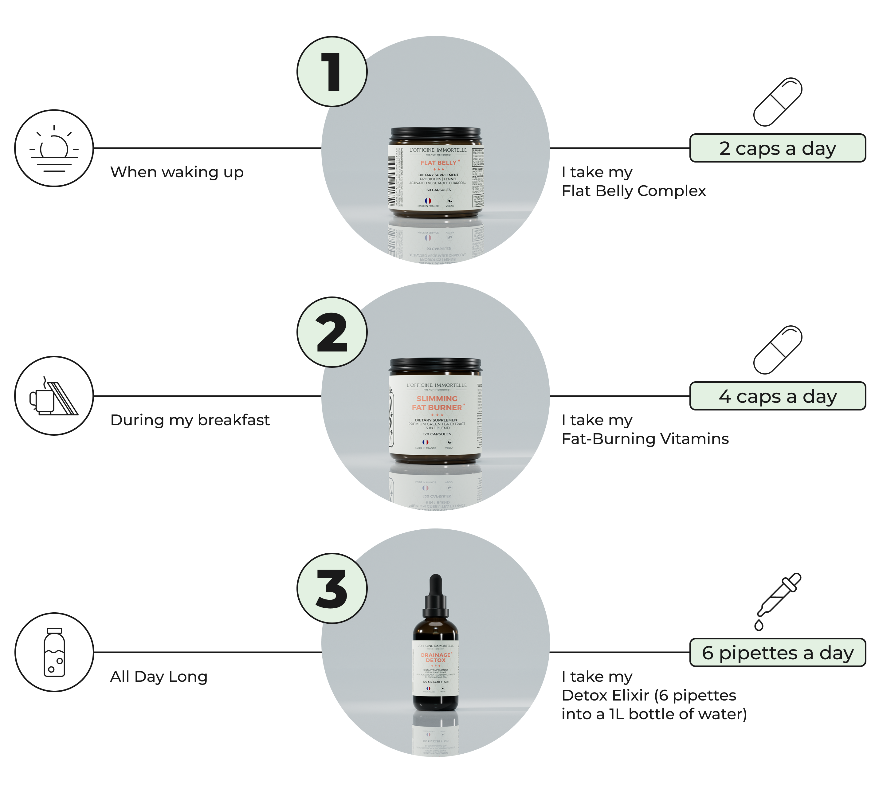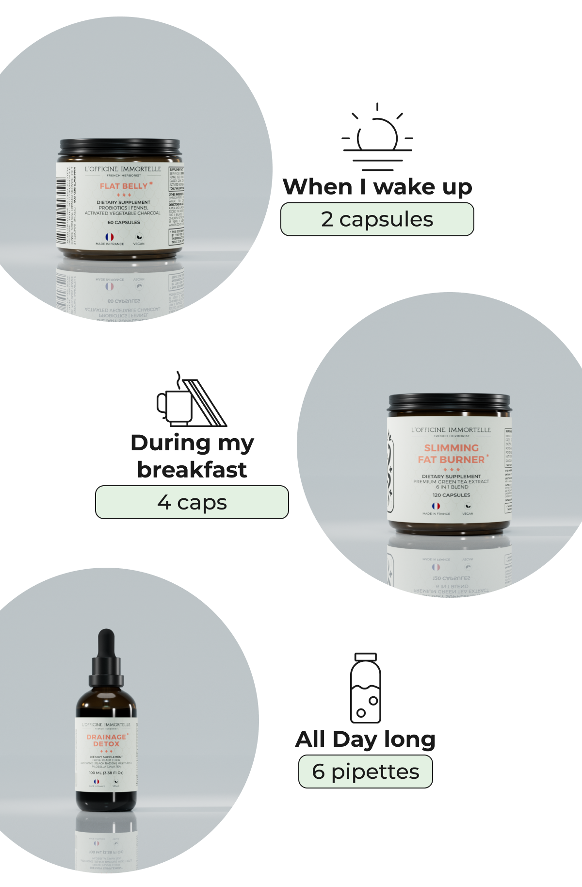 Flat Belly: 2 capsules per day.